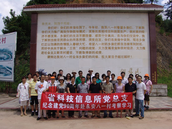 2011年7月22日,在舉國歡慶中國共產(chǎn)黨建黨90華誕之際,省科技信息所黨總支組織全所黨員,到胡錦濤總書記曾親臨視察過的村莊——永安八一村考察學(xué)習(xí)。